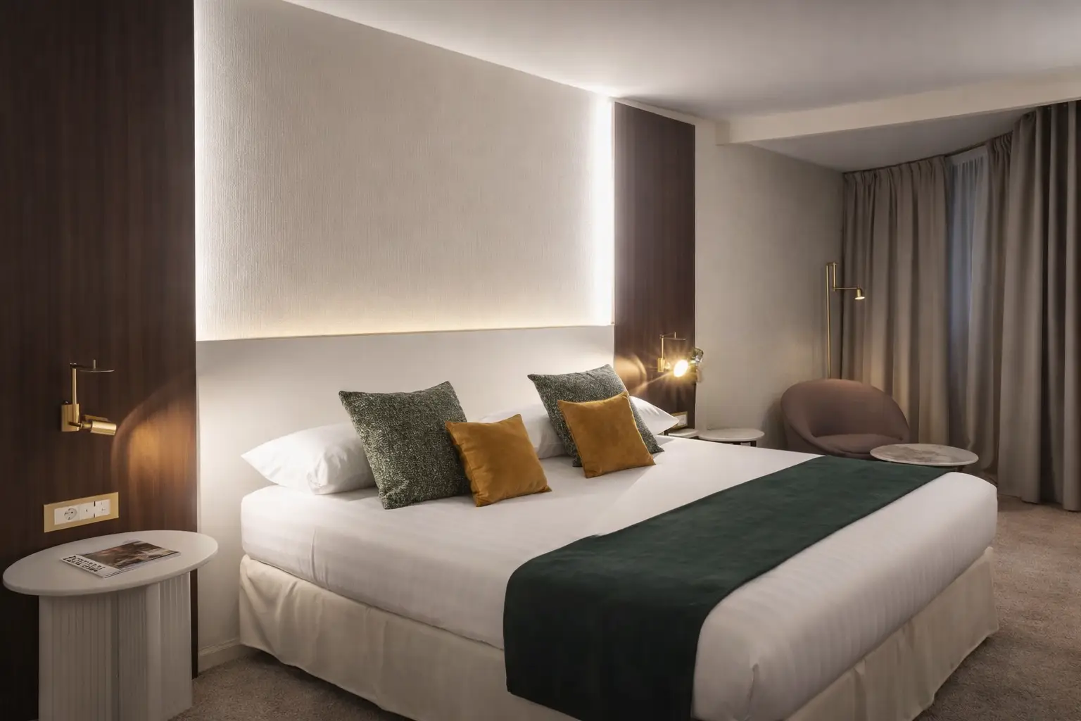 Dans le cadre de la rénovation de l’Hôtel Palladia, notre mission a consisté à repenser les chambres et salles de bains afin d’offrir une expérience client à la fois contemporaine, confortable et élégante, en parfaite cohérence avec l’image haut de gamme de l’établissement.