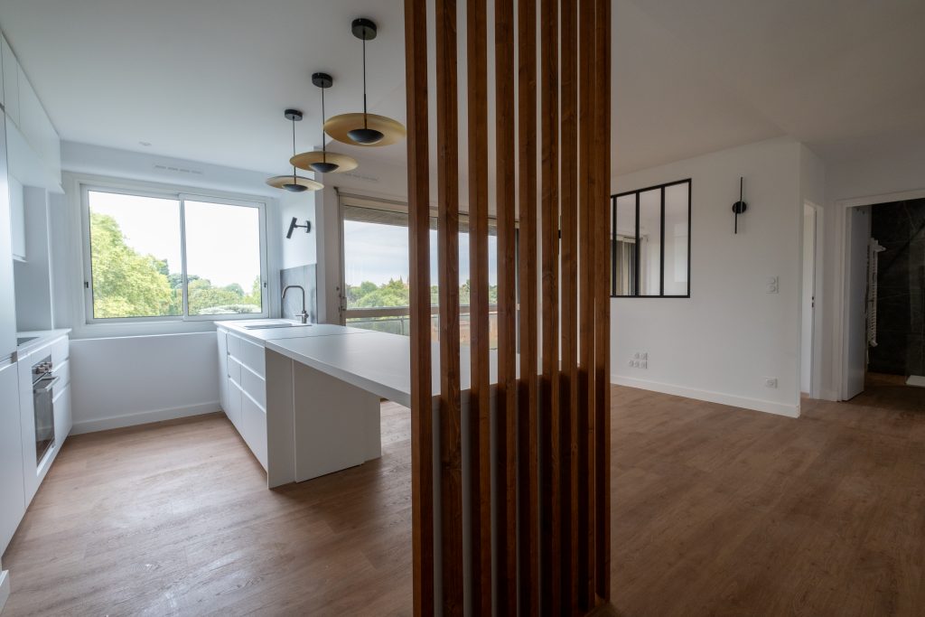 Situé au 5ᵉ étage d’un immeuble toulousain, cet appartement de 43 m² a été entièrement repensé afin d’optimiser chaque mètre carré et d’accroître sa valeur locative. L’intervention a consisté à ouvrir et décloisonner certaines zones pour favoriser la lumière naturelle, à réorganiser la distribution intérieure pour fluidifier les circulations et dégager les perspectives, ainsi qu’à intégrer une cuisine fonctionnelle ouverte sur le séjour. L’ensemble du projet vise à offrir un logement lumineux, pratique et esthétique, pensé pour répondre aux attentes d’un marché locatif exigeant, tout en garantissant confort et durabilité.