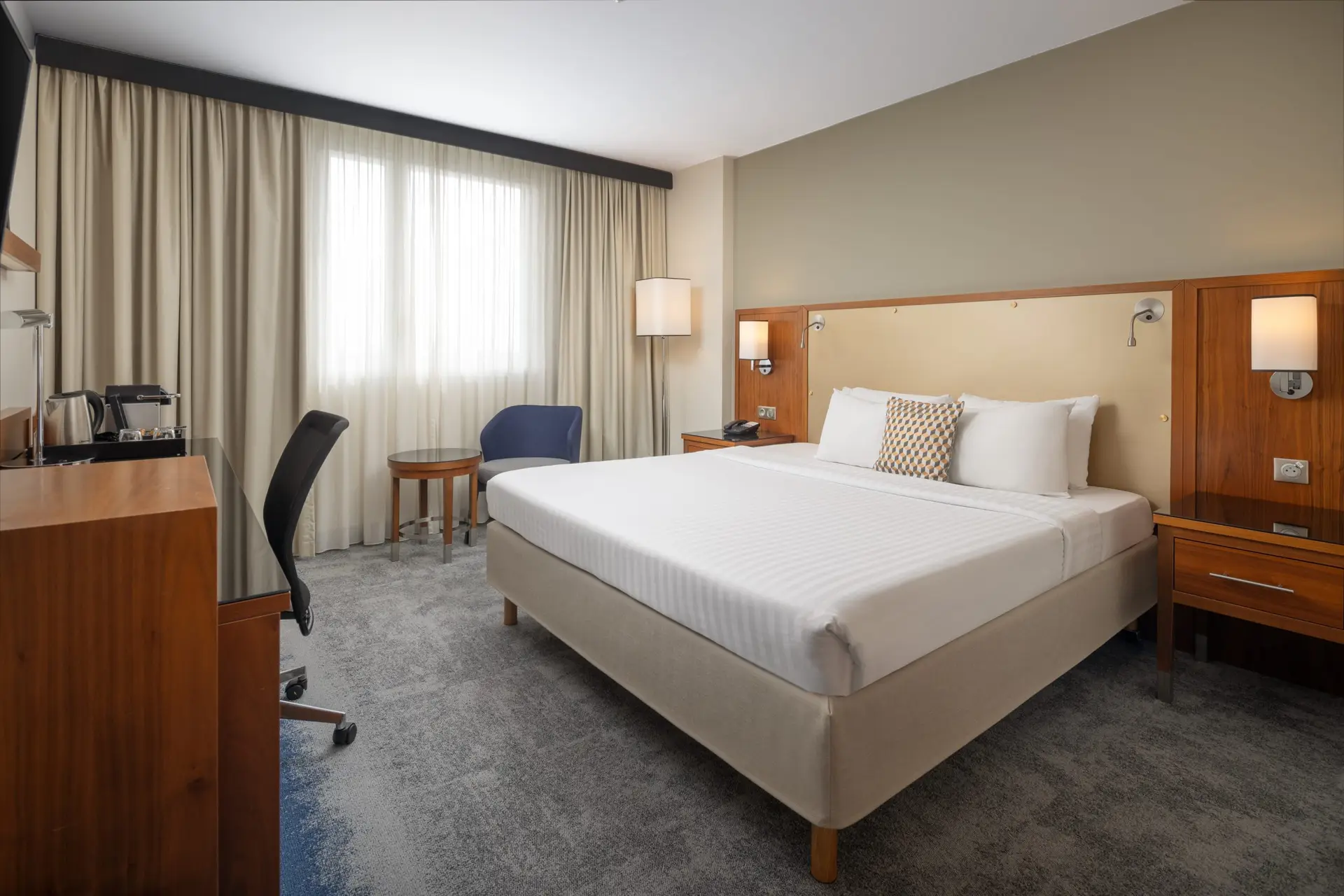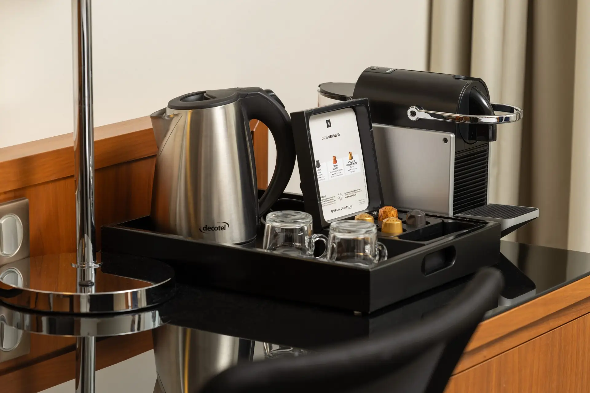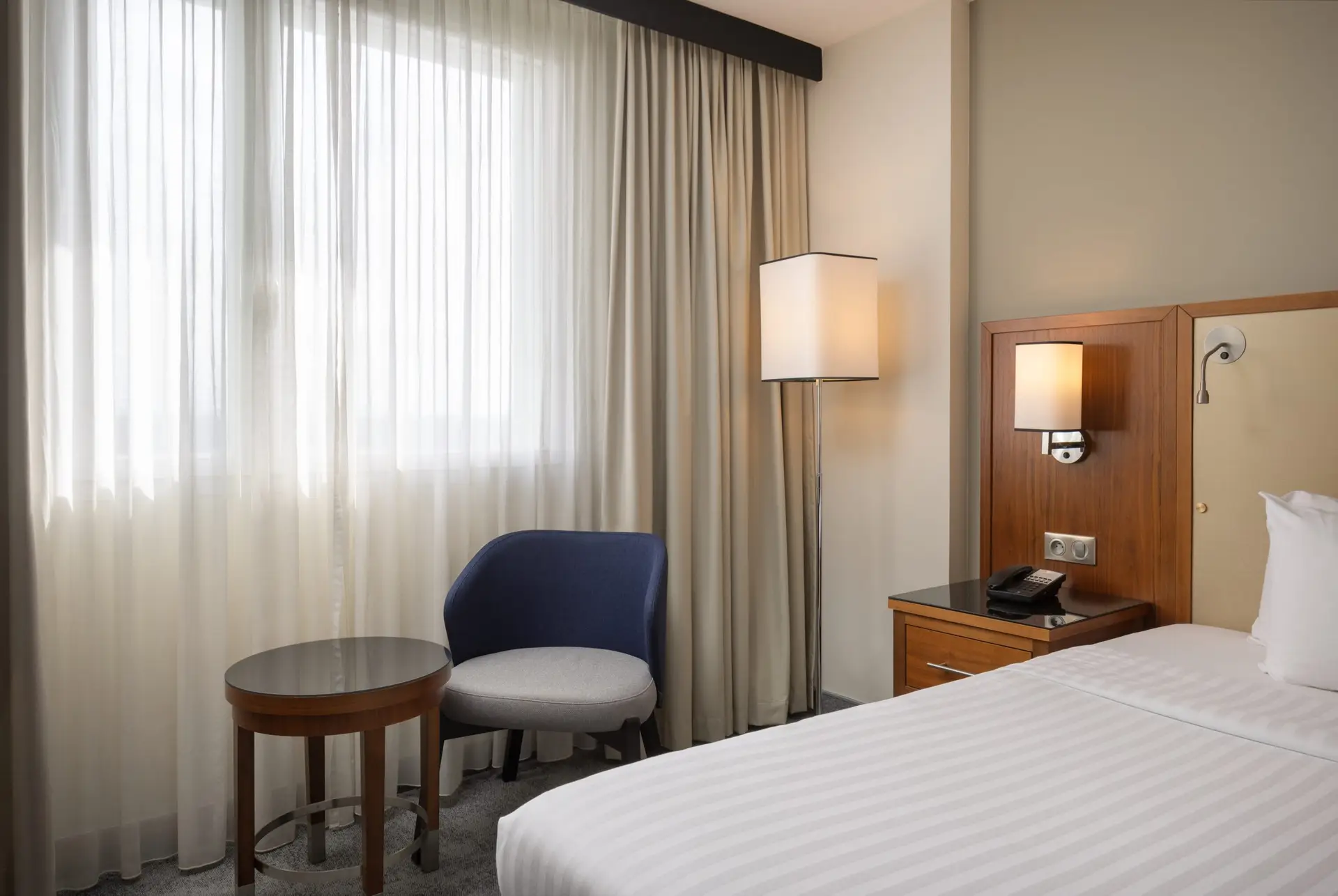Rénovation des chambres des six étages en conservant le mobilier existant et l'identité Courtyard, avec une remise à niveau des finitions, des revêtements, de l’éclairage et des éléments décoratifs afin d’assurer une modernisation harmonieuse tout en respectant les standards de la marque.